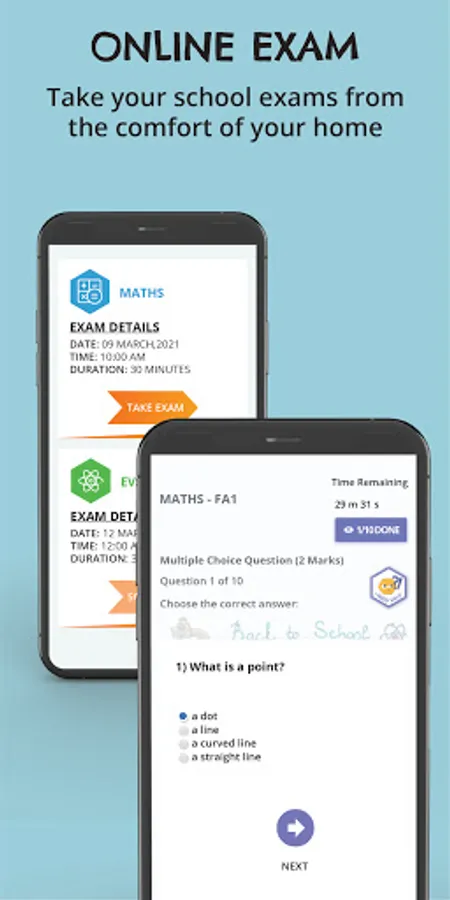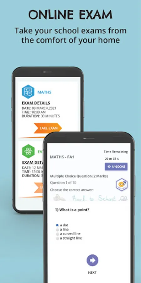Online Exams: Take exams scheduled by your school from your mobile or tablet and get your performance analysis report on the app