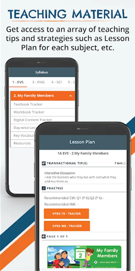 Syllabus: An array of teaching tips and strategies is included like Assessment Patterns, Annual Planning Tool, Lesson Plan for each class, Teaching Aids List, End-of-Term Reflection, prescribed syllabus for each assessment for each grade along with session-wise breakdown concepts to be covered. Teachers can mark their progress in each class and align the teaching pace with exam dates. A digital copy of our curriculum textbooks and workbooks, their answer keys with Day-wise Lesson Plans, Important Words and recommended classwork and homework is also included.