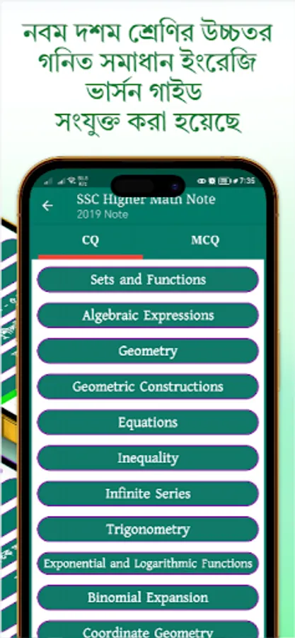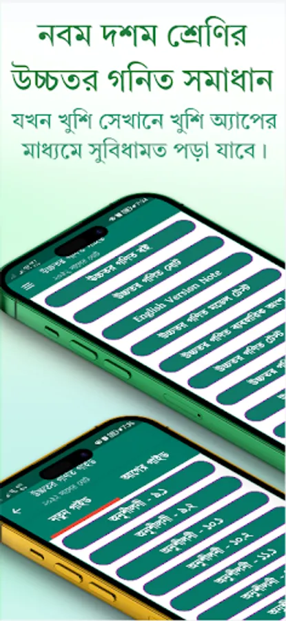 Class 9-10 Higher Math book app provides chapter-wise Higher Math solution for class 9-10 students. This app will help your Higher Math skills and efficiency. You can collect each chapter once and read online without having any internet connection. You can read all chapters of class 9-10 Higher Math book within this single app. This class nine-ten Higher Math book is the latest colored version for upcoming SSC examination. It contains Bengali version of class 9-10 Higher Math book. Class 9-10 science students will get much help from this Higher Math solution app.