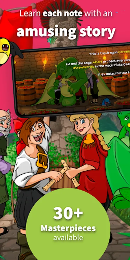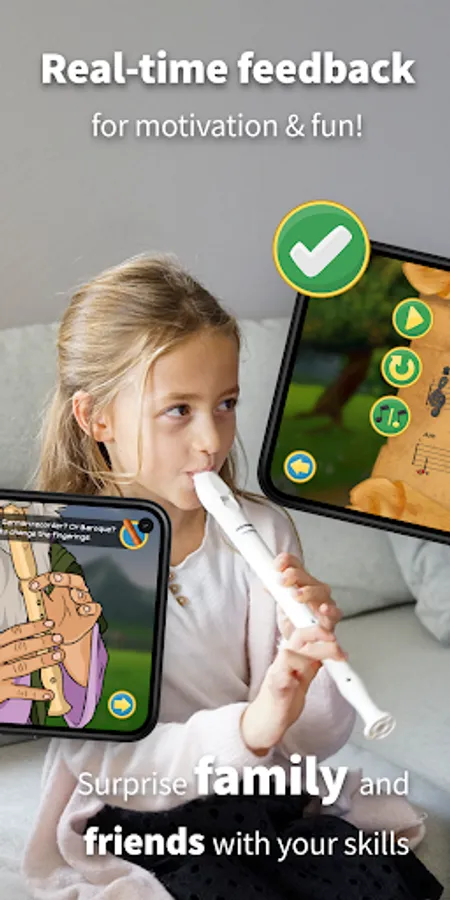 Learn step-by-step by following the amusing story in the World of Music, and the app will detect in real-time if you are playing the right notes. Play along with 30 awesome-sounding tacks, learn the common music notes on your recorder, and impress your family and friends with your new music skills, showing that a soprano recorder can sound great!