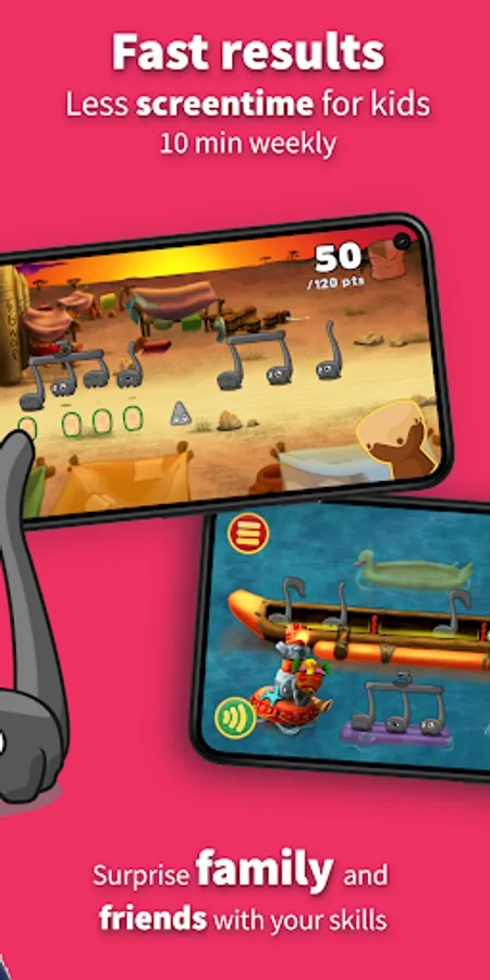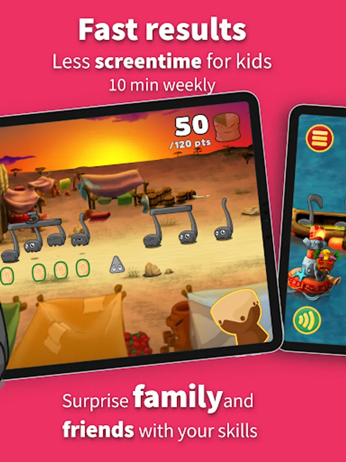 No need to hang in front of your screen for hours! We recommend playing with the worldwide awarded app for 10-15 minutes weekly. With the fast progress, you will impress your parents, and feel free to share your outcomes with your music teacher! Let him know that he can also use Rhythmic Village in the classroom!