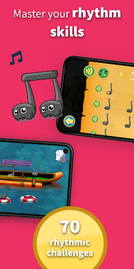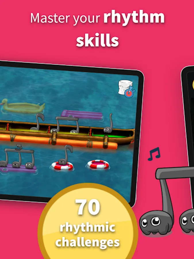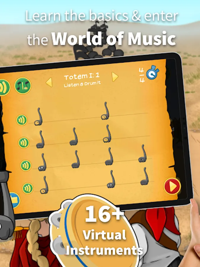 You will improve your reading and rhythm skills step-by-step by tapping on a virtual percussion instrument or by making your high scores with real-time feedback! Turn on the microphone in the app and improve your rhythm skills with a real instrument - a drum, tambourine, or drumsticks. You can even clap along!