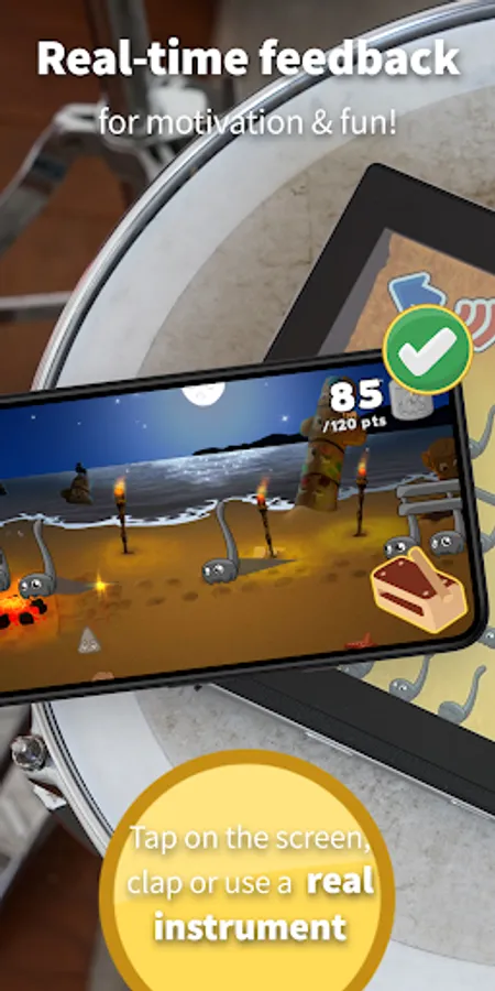 • Learn at home or anywhere you want! You only need your device and your percussion instrument.