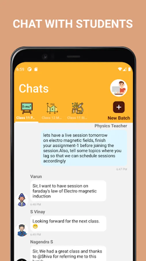 Fight back against big online corporate companies stealing your students. Class space provides the same software they have. Create and Manage your batches, Chat with them offline, and Share class notes, assignments & materials.