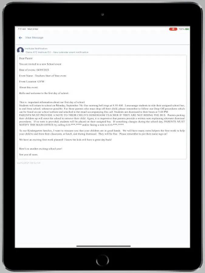 -Calendar Events: Parents can have quick access to educational calendars and get updates about an event such as kid’s exams, meetings with teachers, extracurricular events and many more.