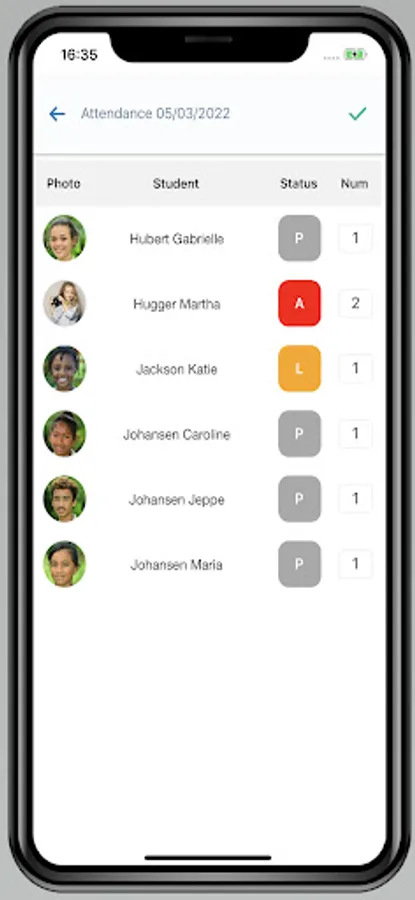 -Attendance: Teachers can edit the attendance status for each student directly from their mobile device and see a detailed attendance report for each specific class.