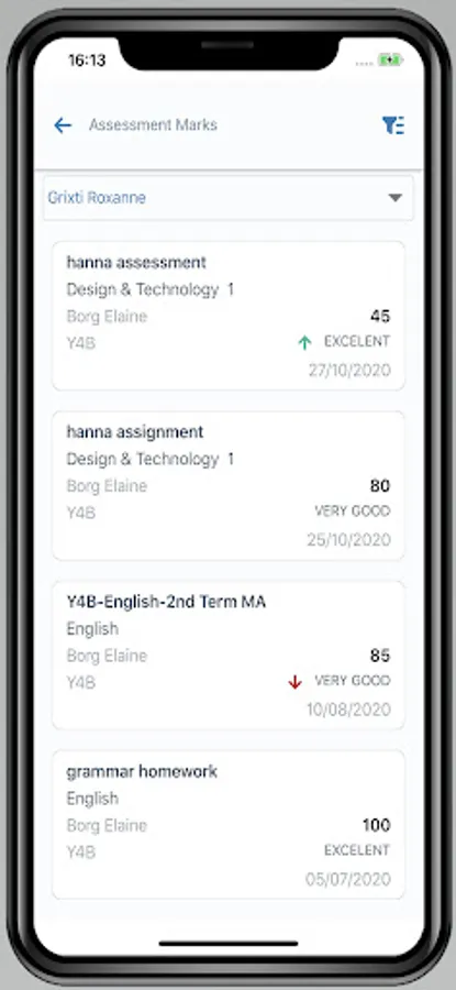 -Assignments/homework: Via the mobile app, parents will be automatically updated about their kid’s homework in a detailed and analytical manner.