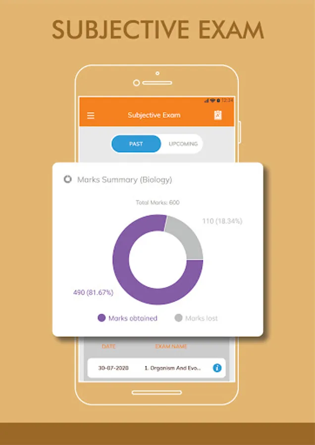Subjective Exam: Detailed test and exam record of the student and also upcoming tests and exams