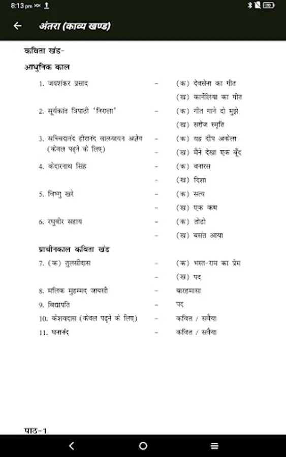 हिंदी भाग : 1 (अंतरा ) काव्य खंड