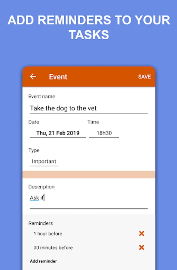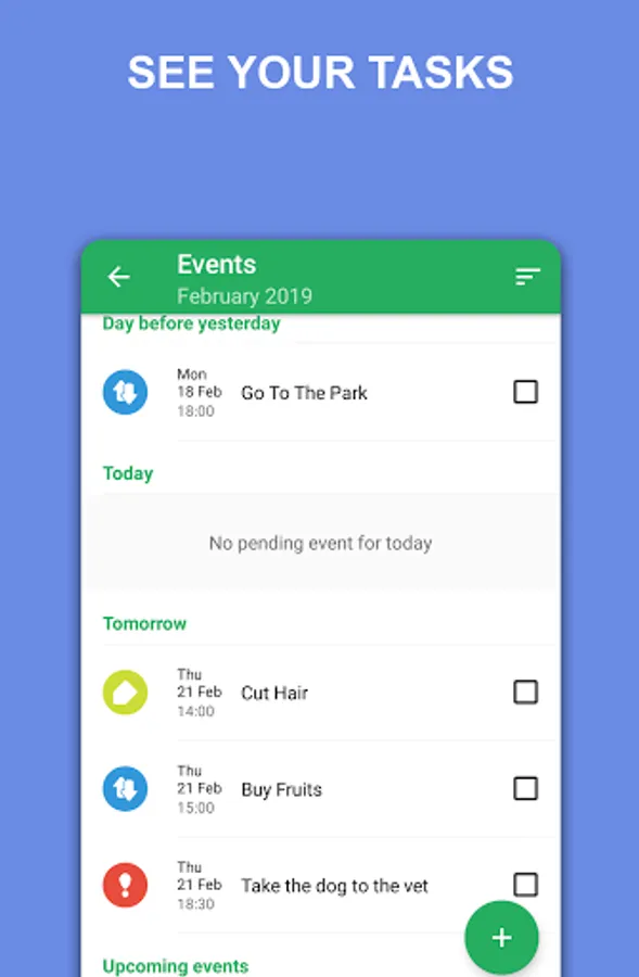 The application has been developed with the aim of being simple, light and easy to use. To start, just add your next events/tasks.