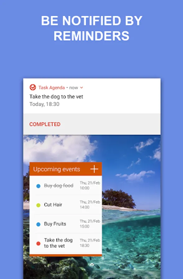 You can add a widget to the home screen of your device so that the next events/tasks to be completed are displayed.
