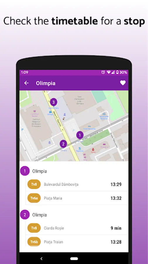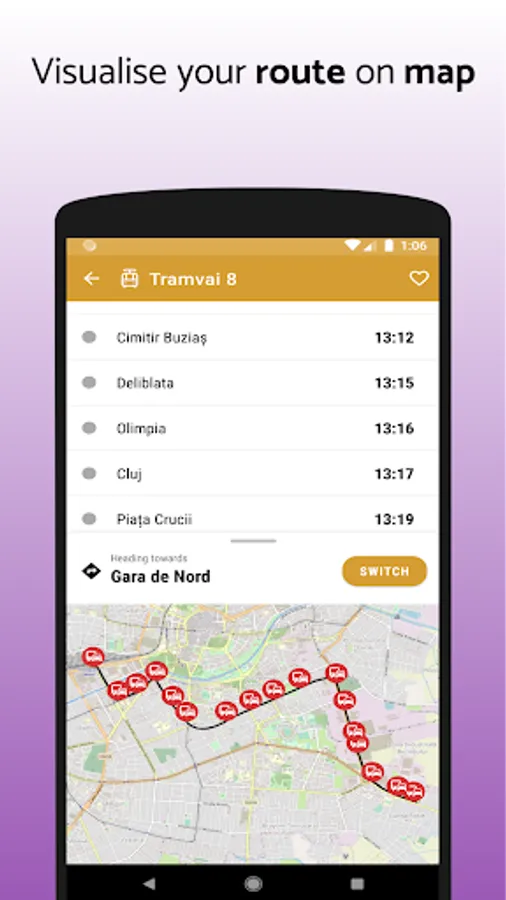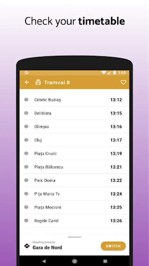 Application uses data provided by the STPT (known as Societatea de Transport Public Timisoara). It gives a smooth and friendly style to schedule your trips so that you will never be late for your trip. The provided information received from STPT consists of: