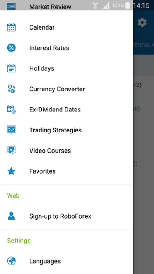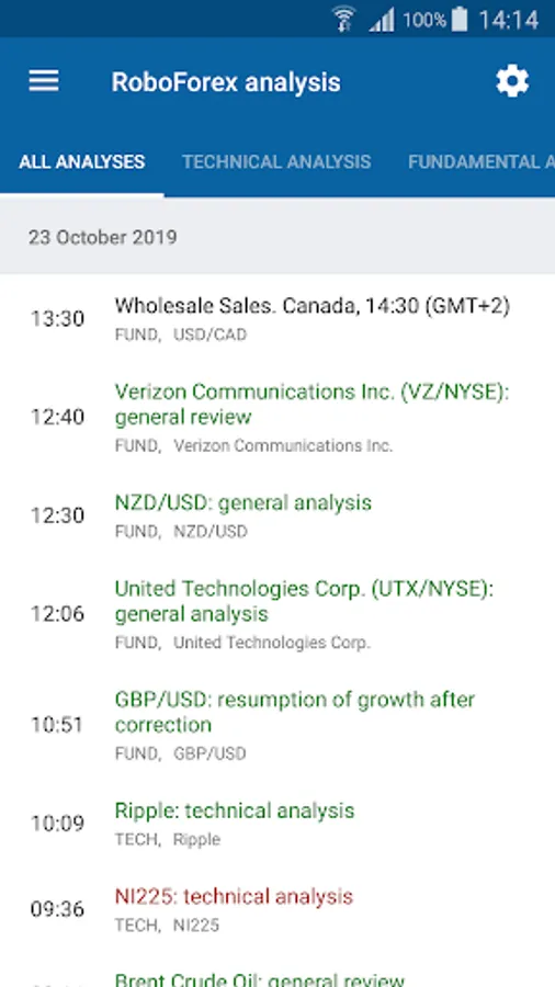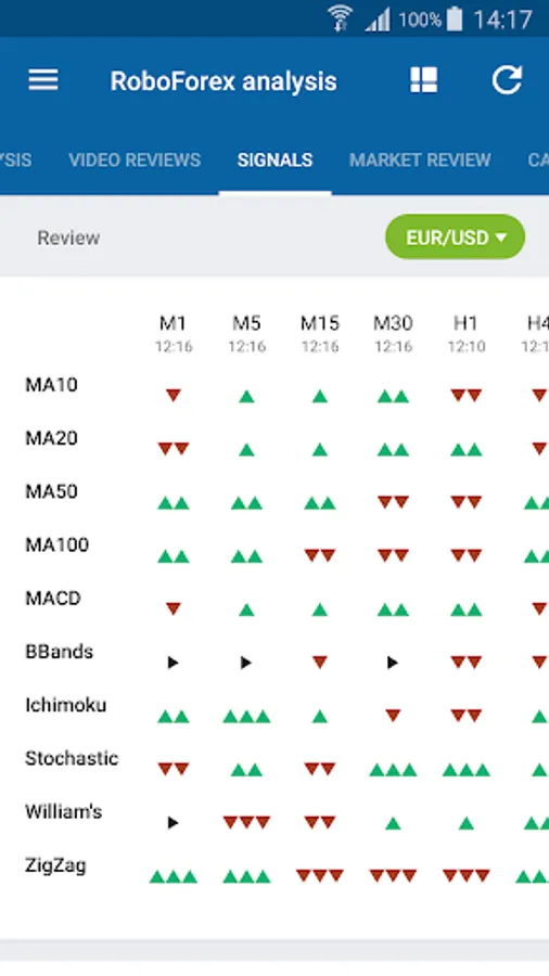 Mobile center of analytics from RoboForex is a portable version of the analytics service available to all clients of the Company. The mobile application provides you with access to all popular types of analytical reviews and the information on currency markets, along with main trading instruments and signals. All these features are available in your mobile device absolutely for free.