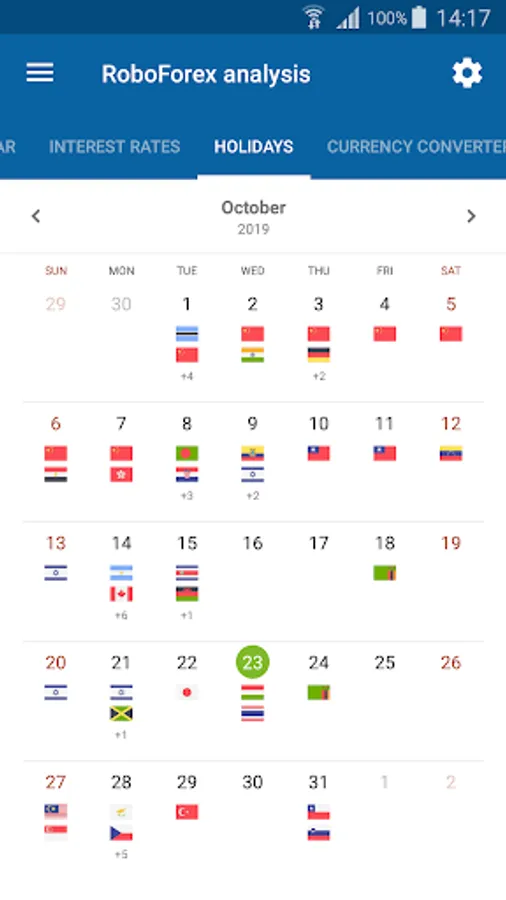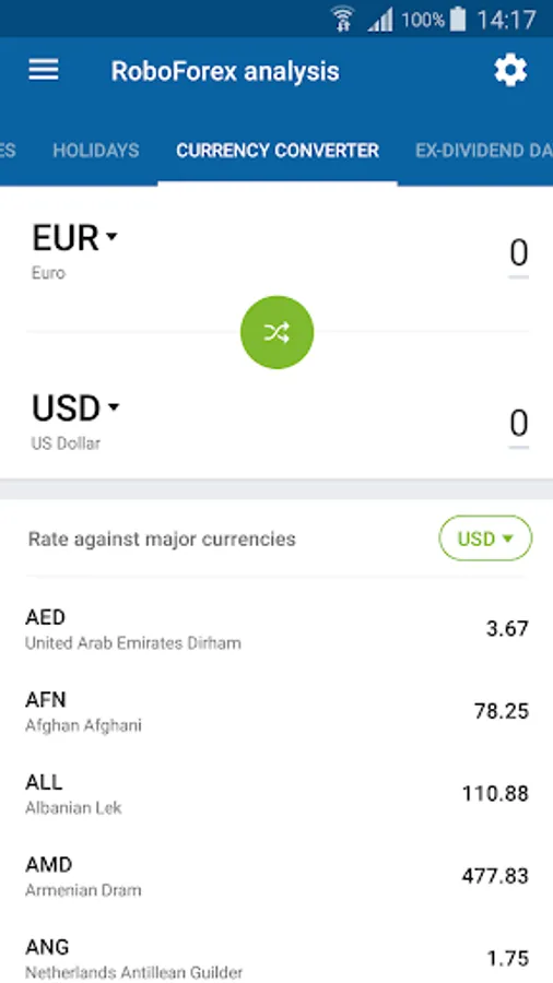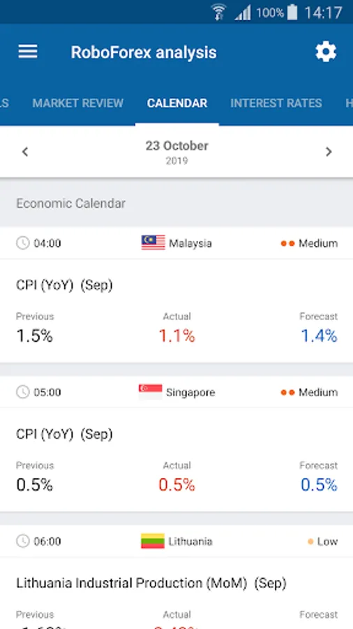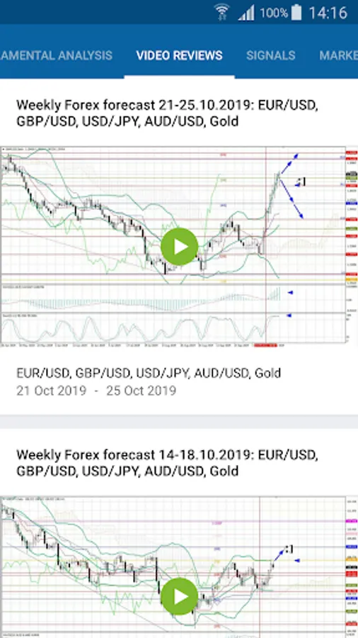 In the application, you will find reviews and forecasts based on both technical and fundamental analysis, and video reviews. Economic calendar, popular technical indicators and trading recommendations based on them, the chart of market sentiment for each instrument, bank holidays, the trading sessions schedule, the currency converter, and more.