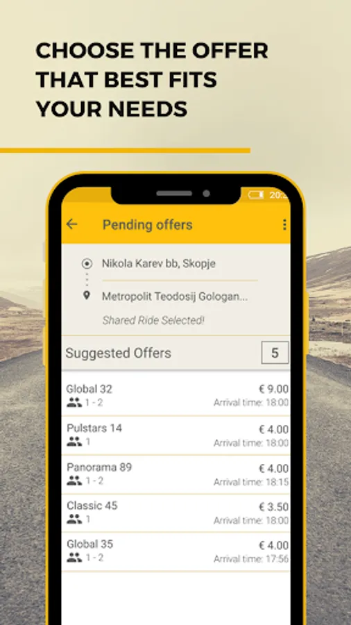 Send request for a ride and start receiving drivers bids. Choose the offer that best fits your needs by time of arrival, price or driver rating. Enjoy your comfy ride on your own.
