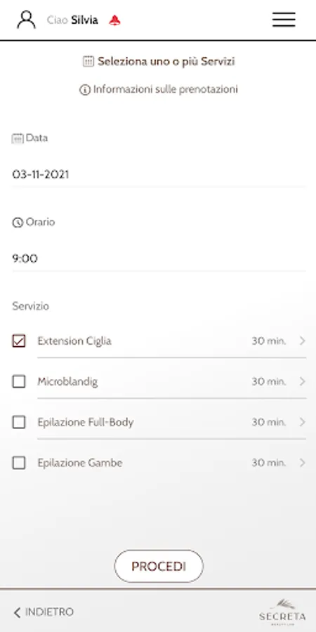 Book your appointments through the Secreta Beauty Lab App