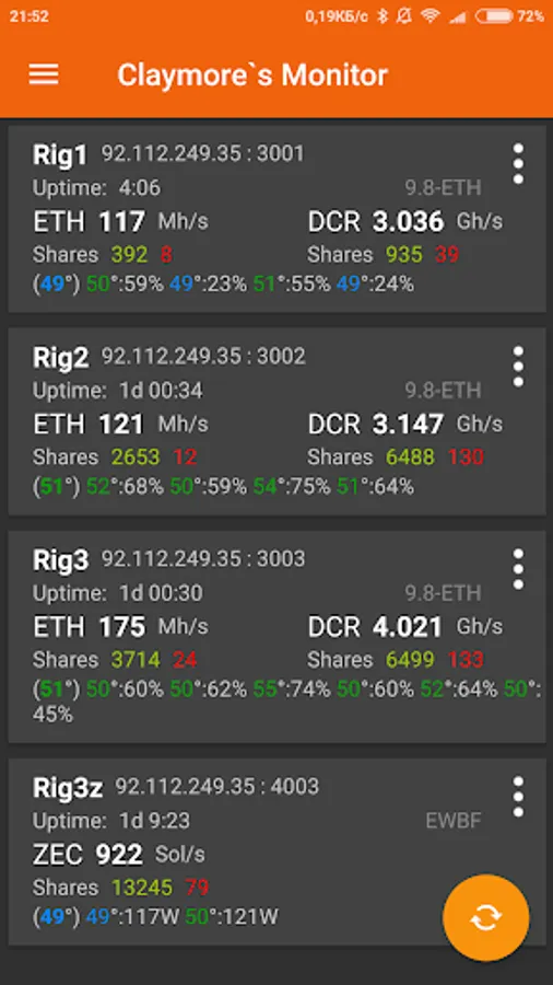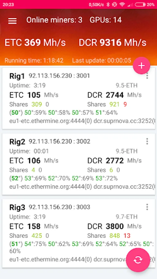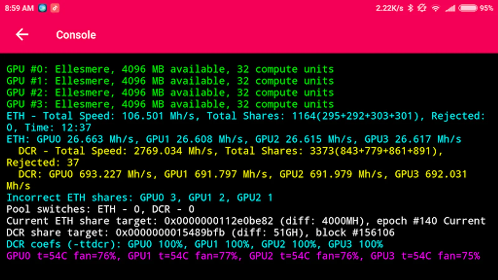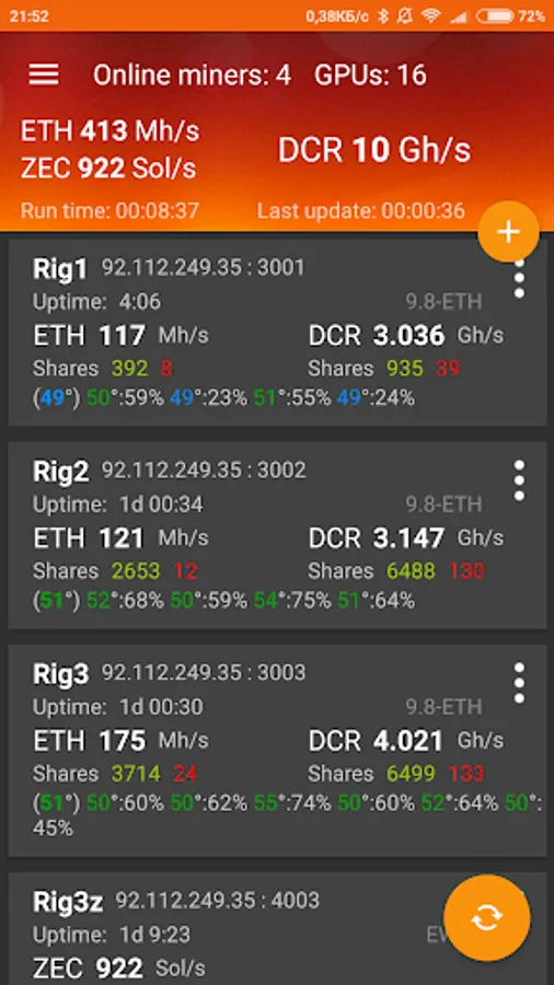 • Detailed statistics for the miner for each GPU