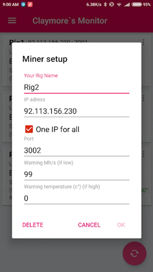 • Support for all Claymore`s miner