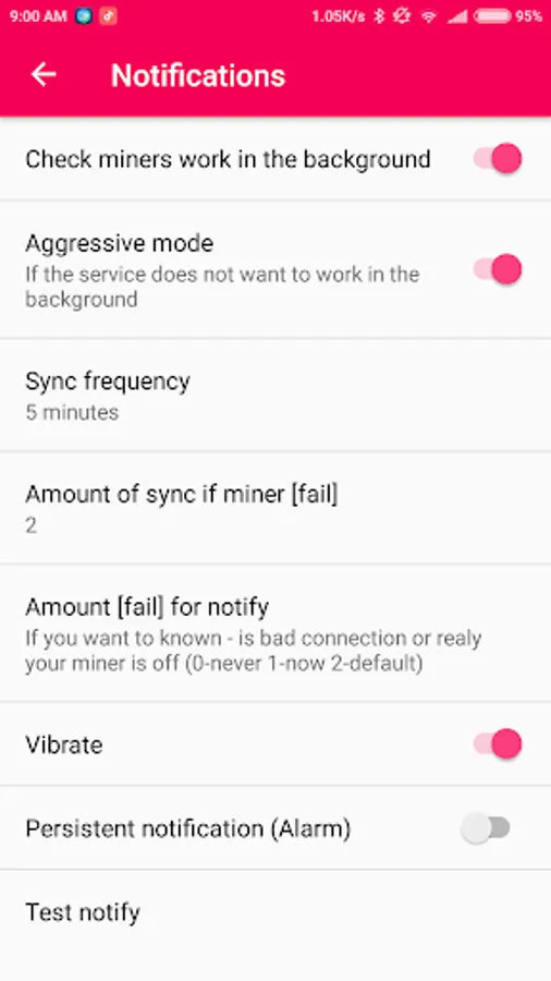 • Alert when miner down