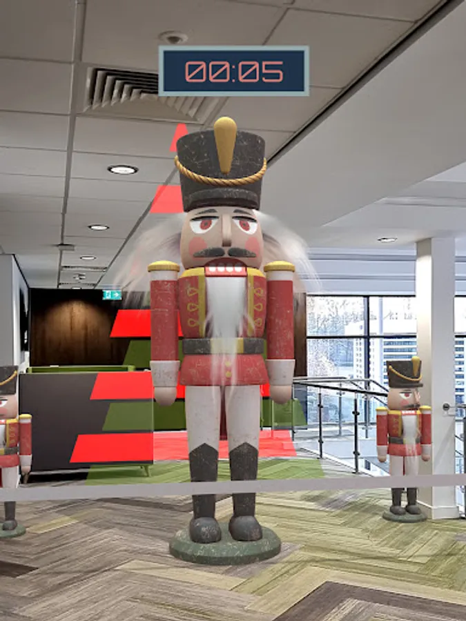 Use your phone or tablet to create a ‘play zone’. Once in position wait patiently until the Nutcracker Soldier turns his back. Now’s your chance – run whilst you’ve got the chance to sneak up on him. But keep your eyes peeled… as soon as he turns to face you, freeze to avoid his icy glare.