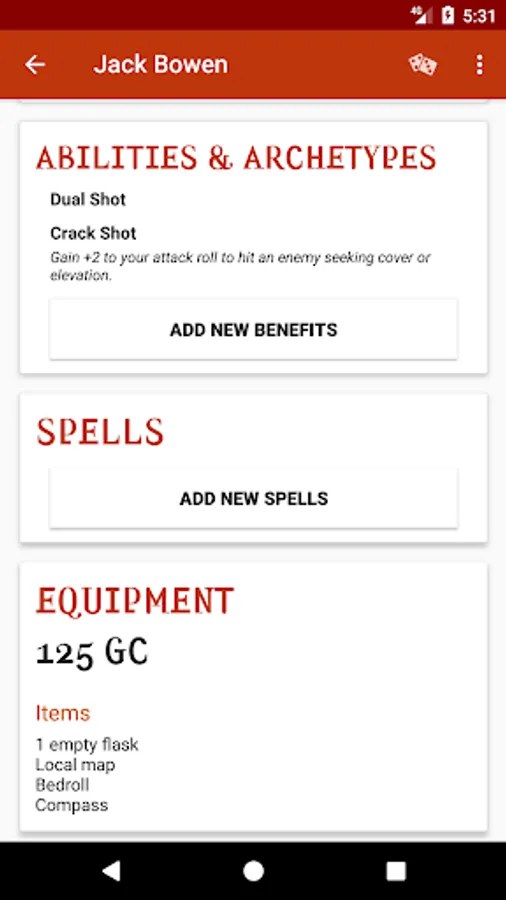 - Keep track of every aspect of each of your characters, including their stats, abilities, spells, weapons, connections, injuries, and many more!