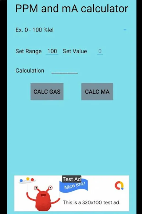 This calculator calculates %lel from a calibration bottle or calculate the mA signal and gasvalue and Visa versa