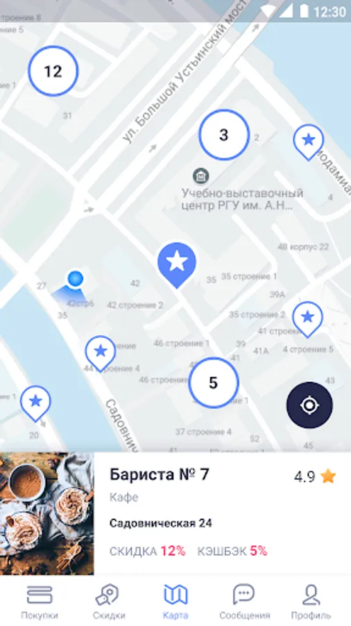 Find places closest to you, offering discounts and cashback.