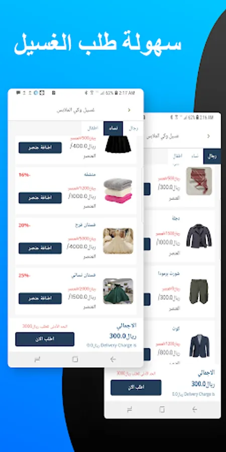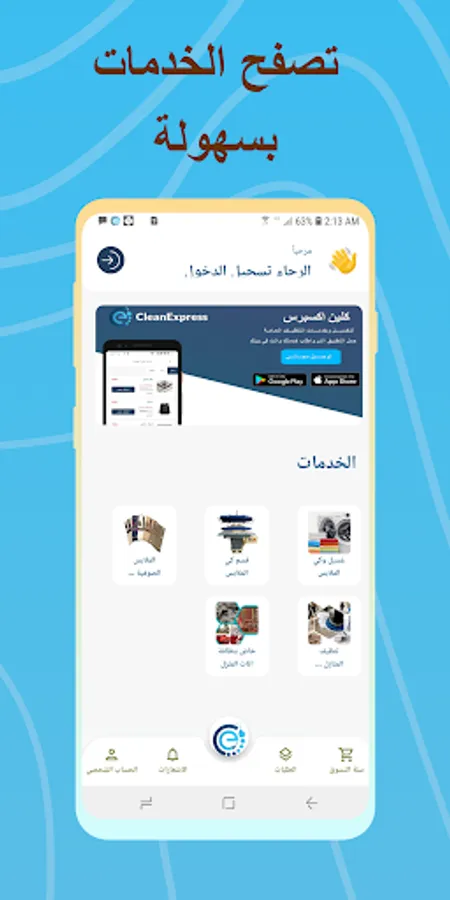 Clean Express platform, the first electronic platform in Yemen, provides distinguished services in the field of laundry and cleaning, and among our services is washing and ironing clothes, washing and cleaning all home furniture such as mattresses, carpets, blankets, and boards for washing houses, villas, apartments, polishing tiles, and others.