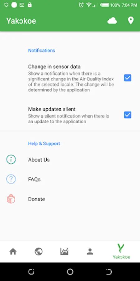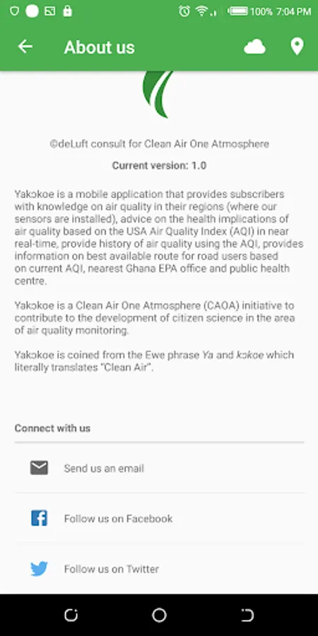 Yakɔkoe is a mobile application that provides subscribers with knowledge on air quality in their regions (where our sensors are installed), advice on the health implications of air quality based on the USA Air Quality Index (AQI) in near real-time, provide history of air quality using the AQI, provides information on best available route for road users based on current AQI, nearest Ghana EPA office and public health centre.