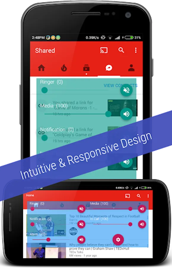 • With expanded volume control straight away from notification its so easy to control different volume.