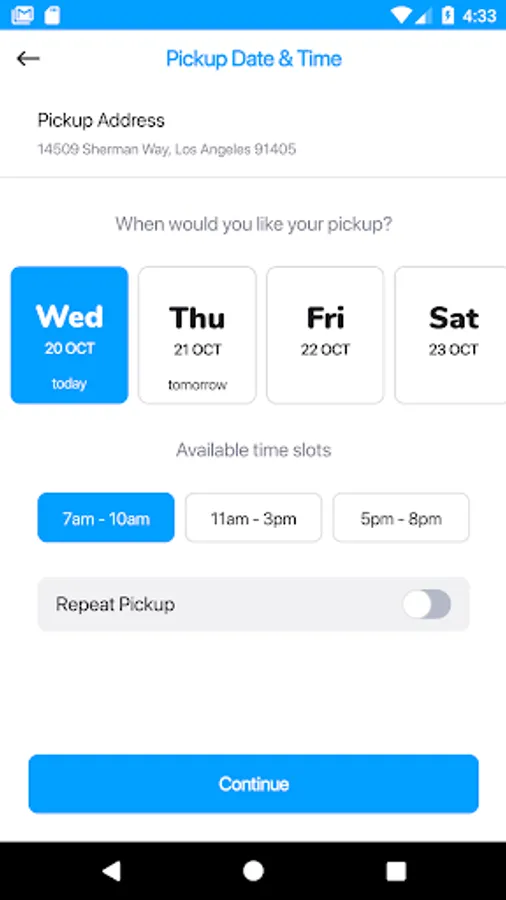 Schedule a pickup or delivery for laundry, dry cleaning, or laundered shirts - 6 days a week, from the palm of your hand. Choose from drop off at one of our 24/7 laundry lockers.