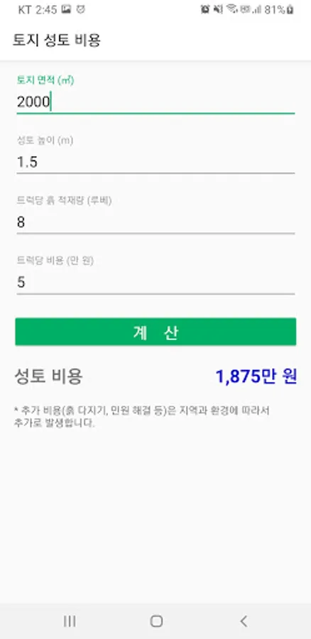 Calculate the minimum cost required for filling according to the land area and fill height. Easily calculate the cost of filling to increase the value of the desolate land.