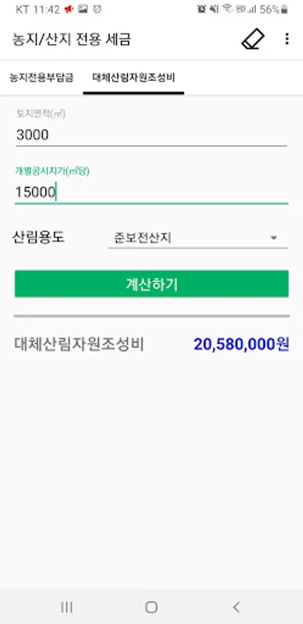 농지, 산지를 개발하기 위해서 필수적으로 내야하는 세금을 계산해줍니다.