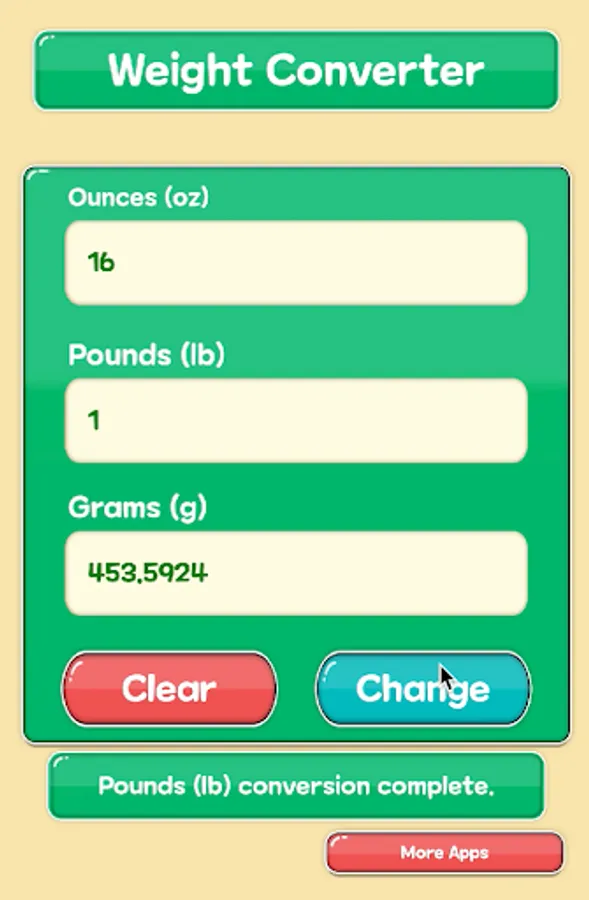 You can convert pounds (lb) to ounces (oz) and grams (g).