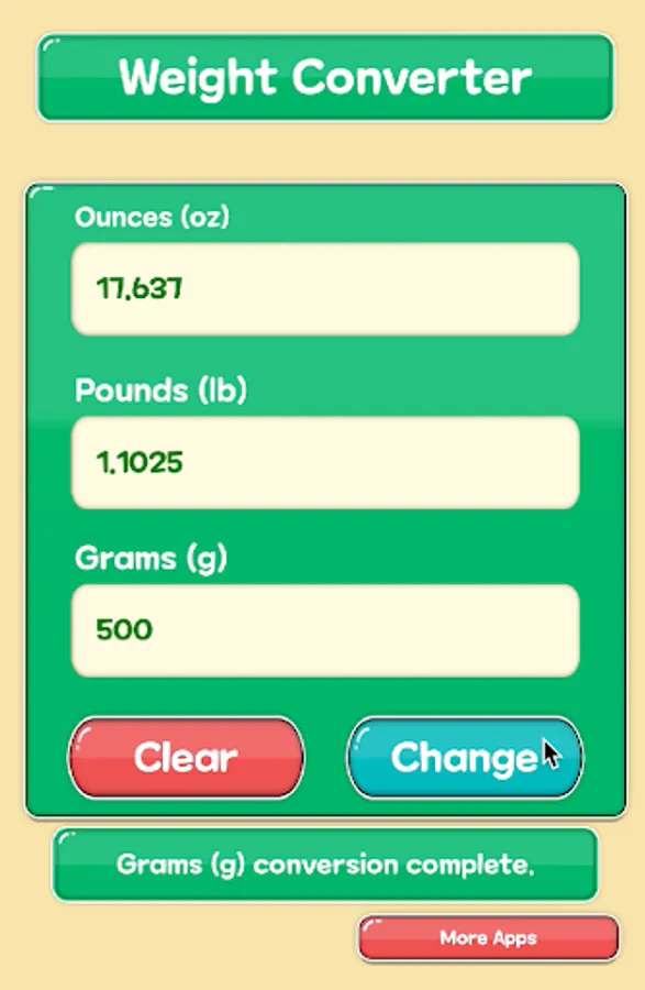 You can convert grams (g) to ounces (oz) and pounds (lb).