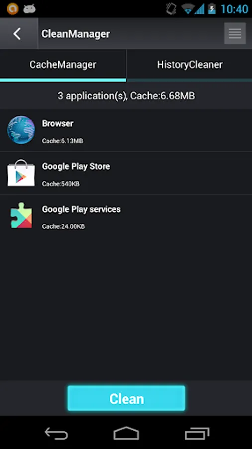 Just tap once the 'One-Tap Speed Up' button, you can run task clear and cache clear, historiy Clear, instantly.