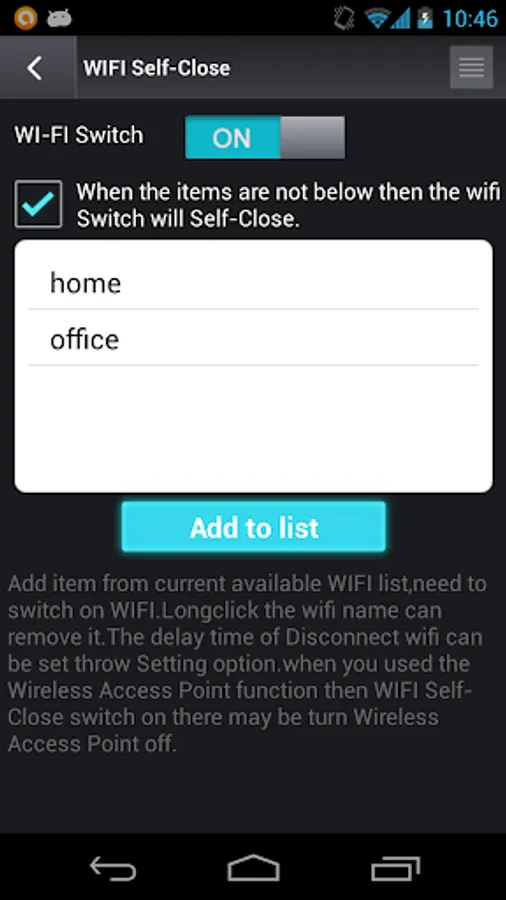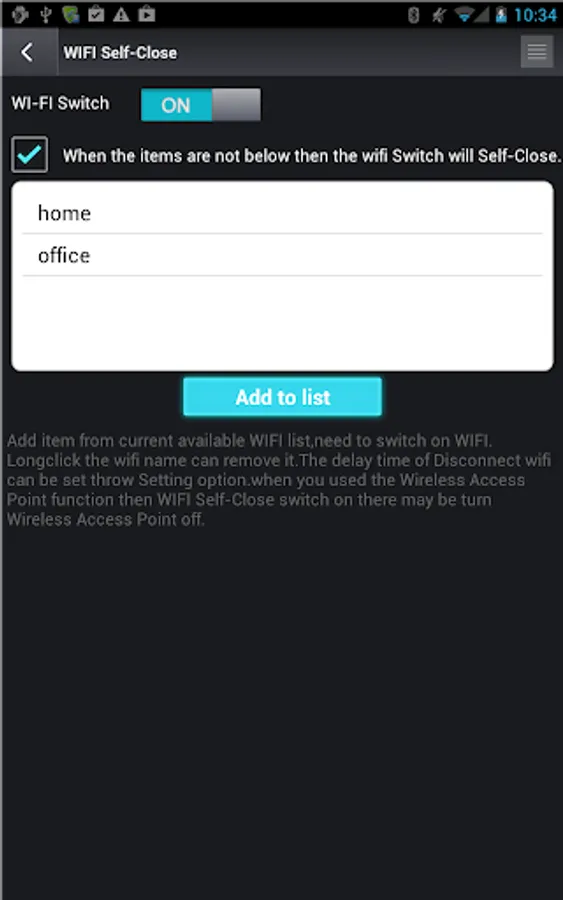 When the access point of Wi-Fi that you specify is unconnected, it automatically turns off the Wi-Fi function.