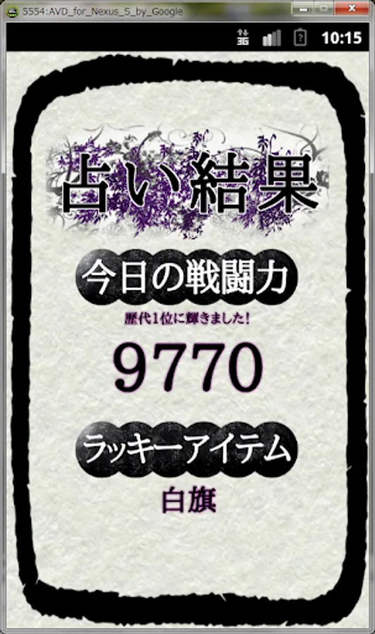 ・占いと同時に、あなたの戦闘力とラッキーアイテムが表示されます