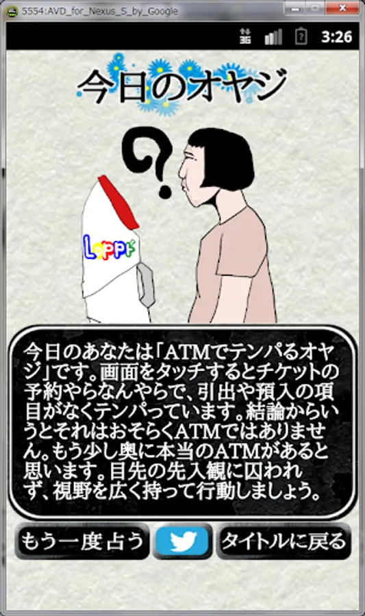 ・【Androidアプリ】“オヤジ”の振り見て我が振り直せ!?「オヤジ占い」