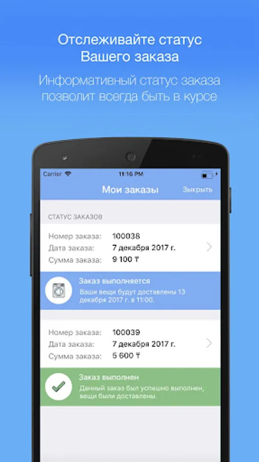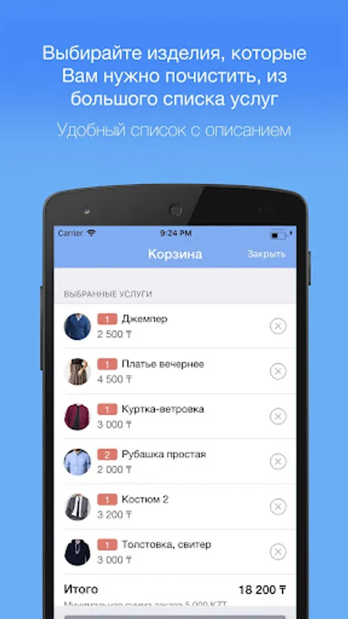 The application has a clear and pleasant interface that will allow you to quickly and easily make an order. Cleanit.kz will be your assistant in dry cleaning.