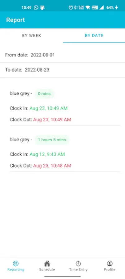 - Track time clock-in and clock out between shifts and view reports of days and times worked.