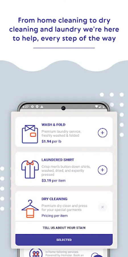 Step 2: Choose from Home Cleaning and Clothing Care options.
