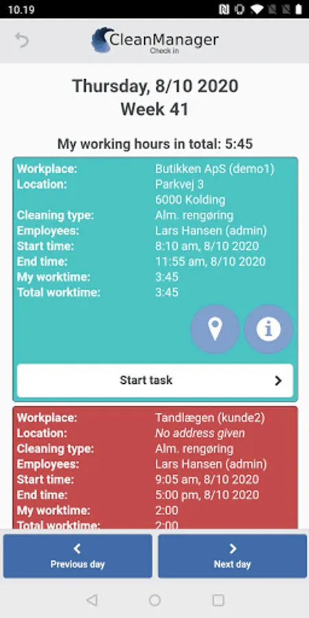 By using the CleanManager app, your cleaning company’s administrator can create and configure NFC tags at the workplaces and then the cleaning employees can check in and out of their cleaning tasks when they start and finish their tasks for the customer.