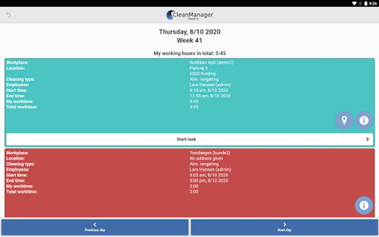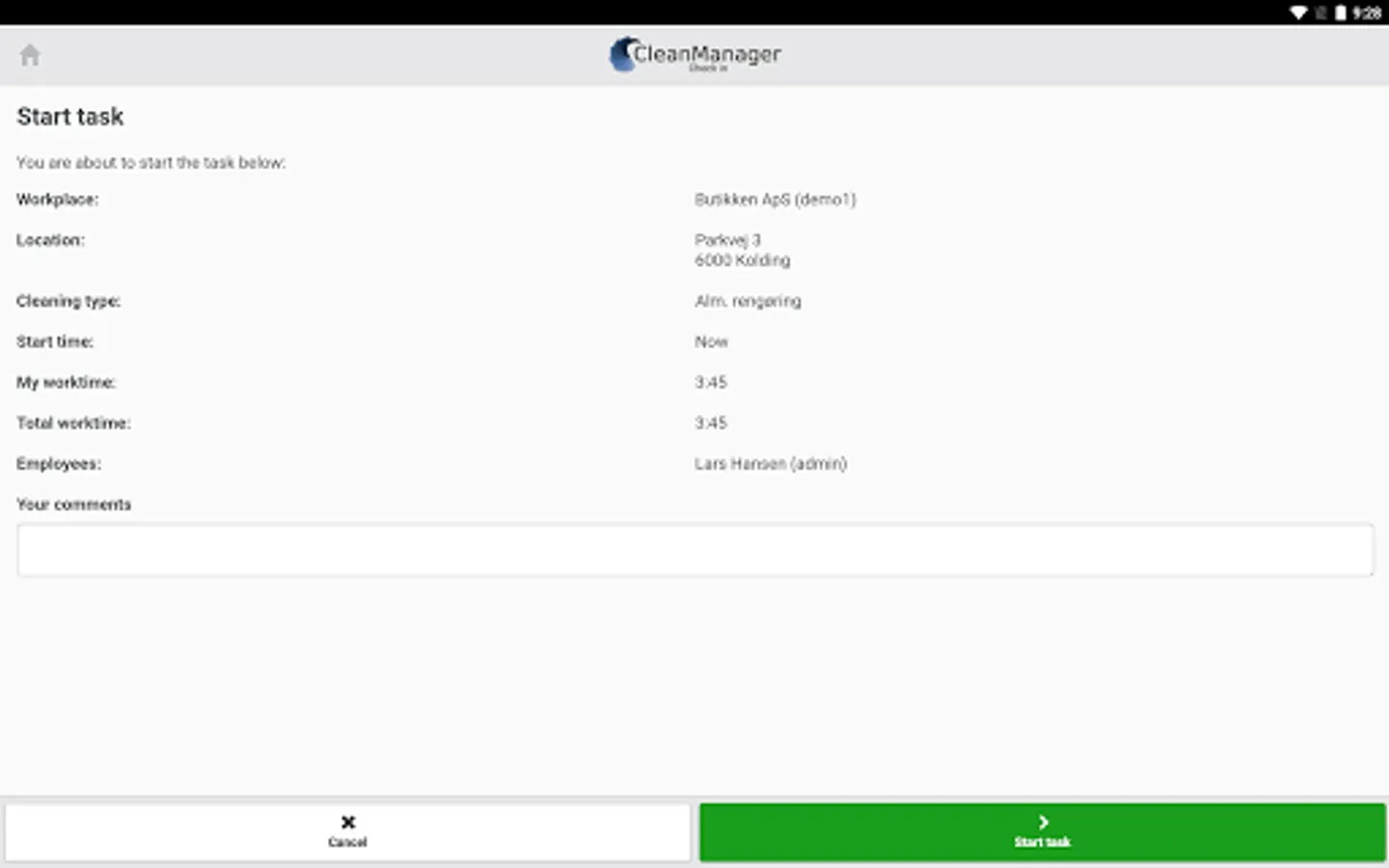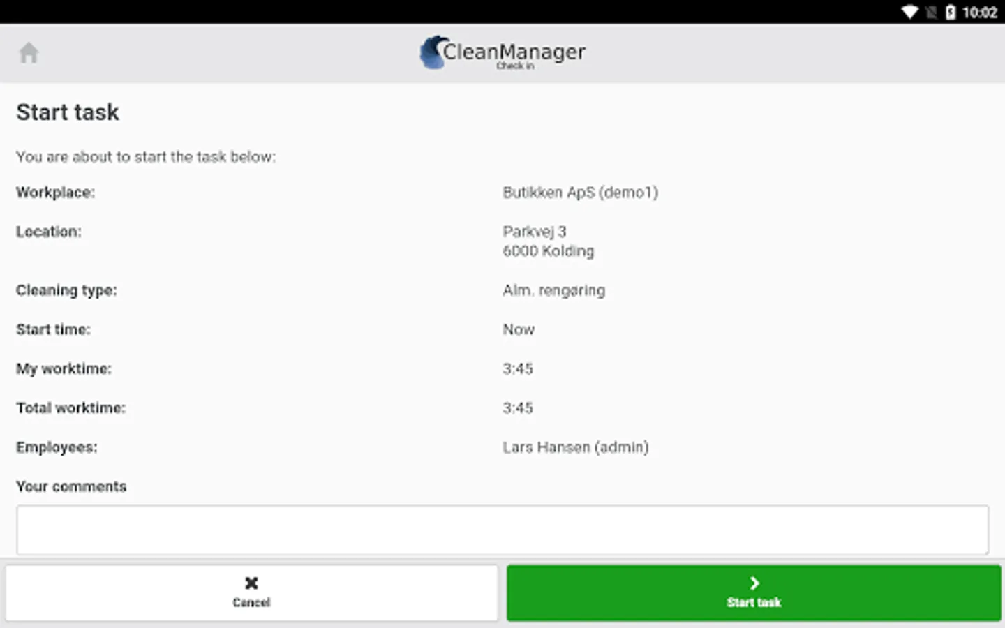 CleanManager Check-in app:
