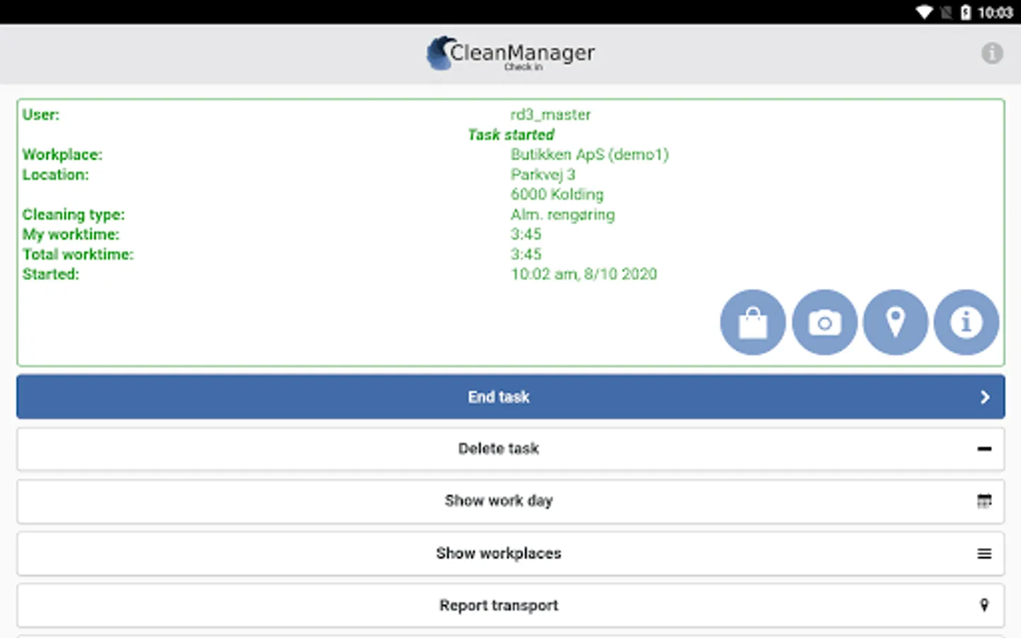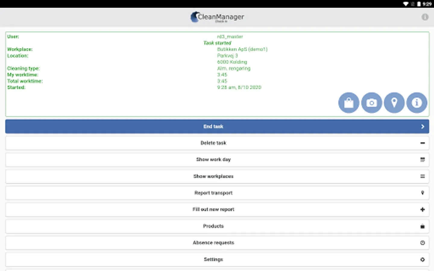 Your employees and inspectors can also fill out reports, request absence, order cleaning products to the various workplaces through the app as well as attach photos as documentation for ongoing tasks.