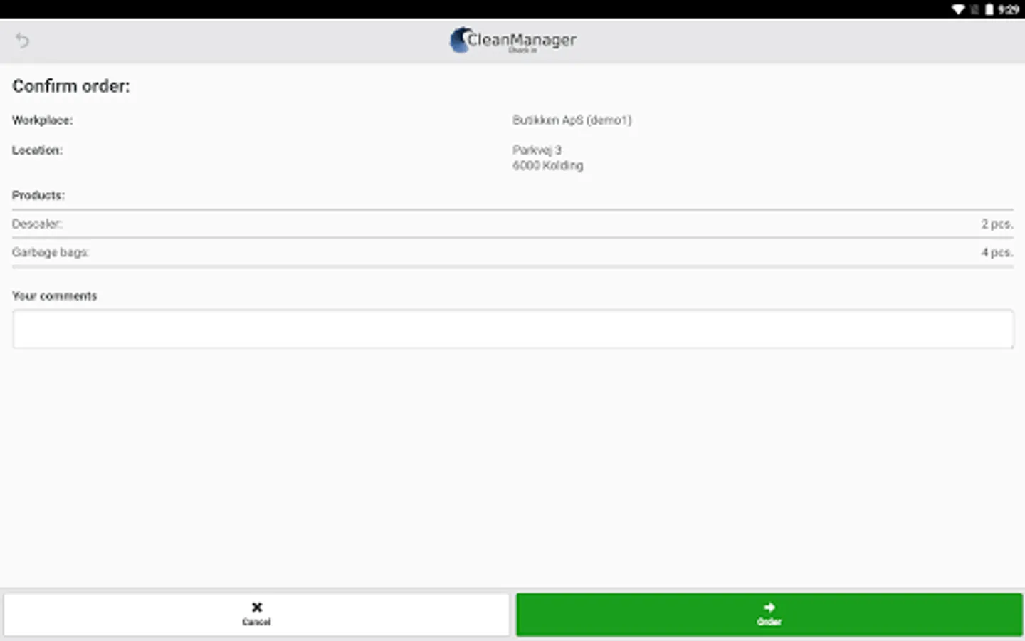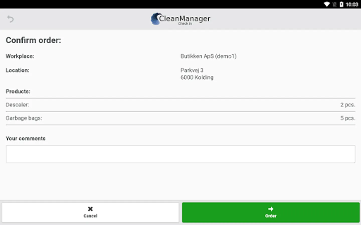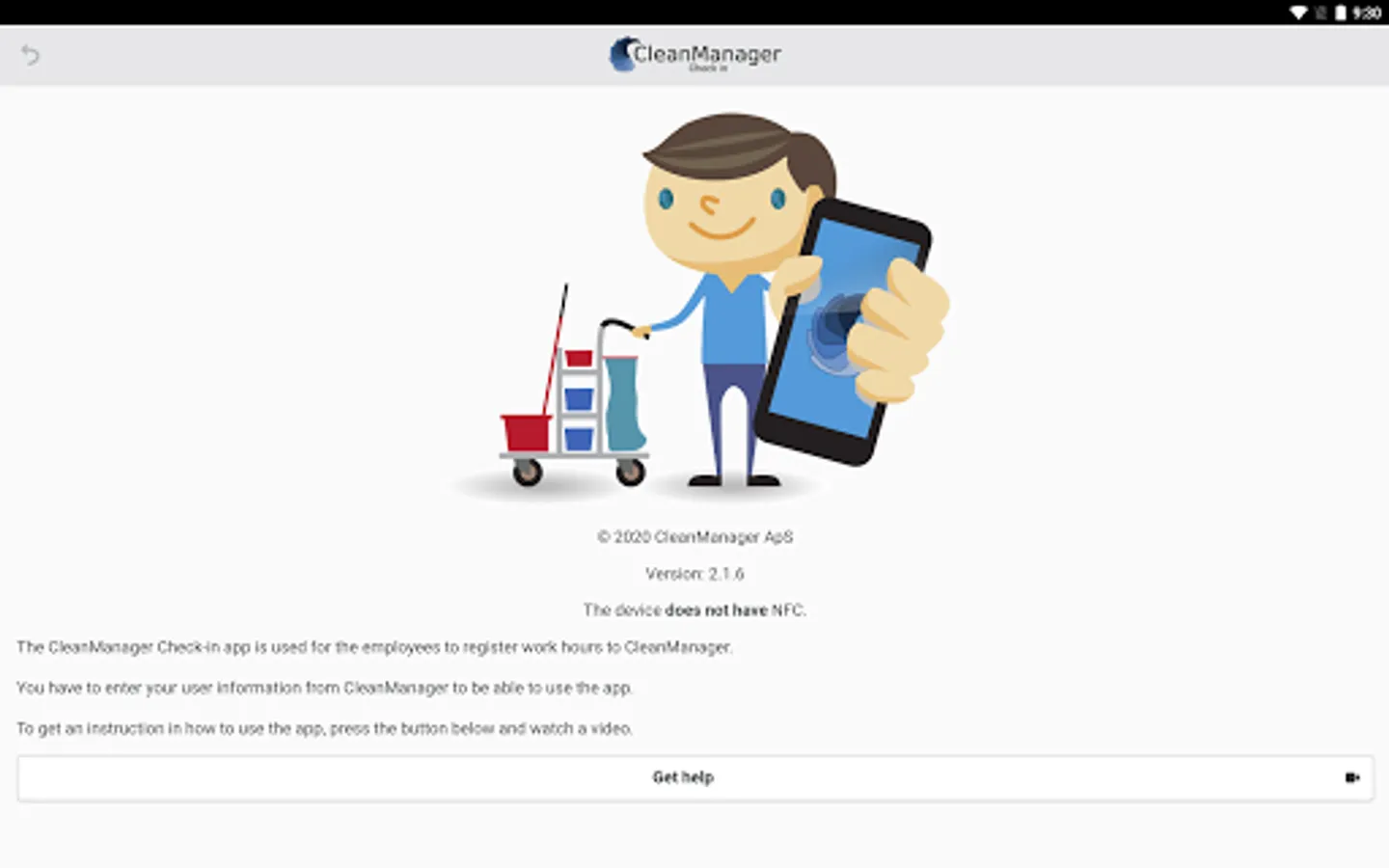 You must have a CleanManager user and the Check-in module enabled on your subscription to use the app. You can create a free trial on: www.cleanmanager.dk.