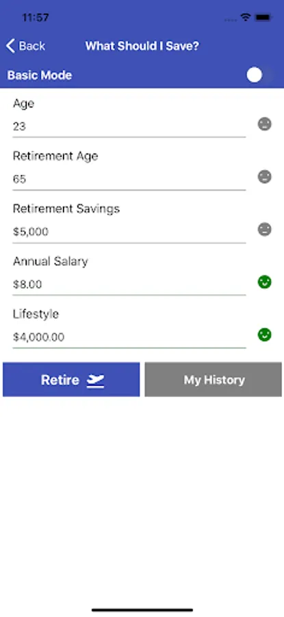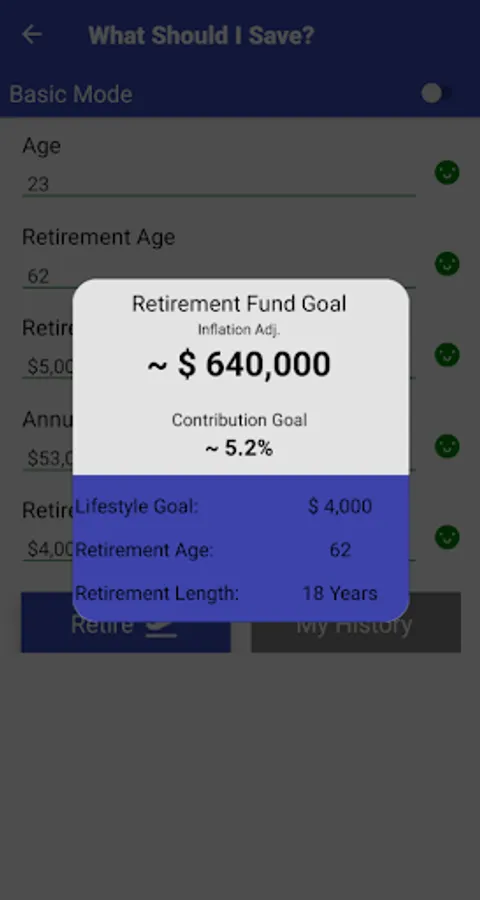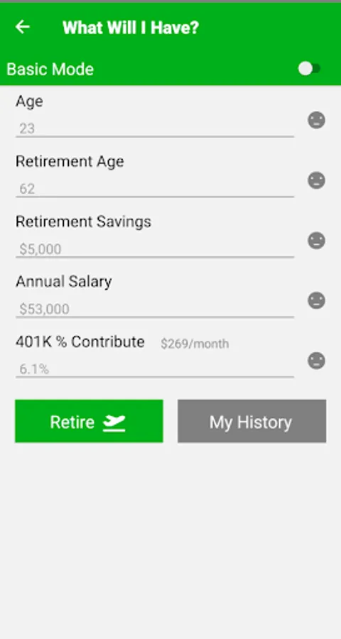 For those with big goals and little time, basic mode only asks you for minimal information, while taking care of the rest. For those that like to get into the weeds, advanced mode gives you more control in calculating your 401k. In both cases, anything you leave blank will default to the national average!