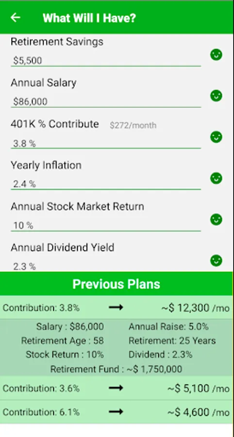 A lot can change until you retire, so you'll probably want to check out some of your previous calculations. No need to pick up the pen and paper, this one is on us--your last 3 plans are automatically saved in your history.