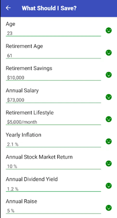 • The “What should I save?” Calculator: uses your financial and lifestyle goals for retirement to determine a current 401K contribution rate.