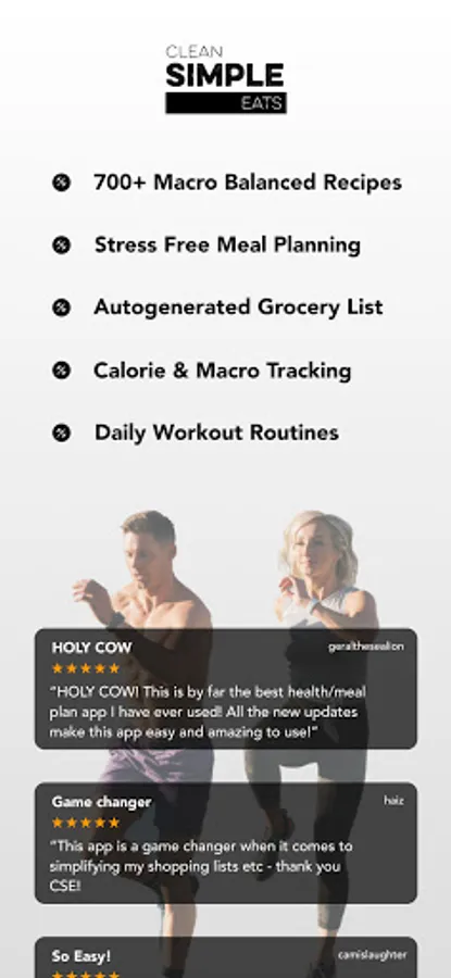 Clean Simple Eats has helped thousands of members on their journey to a healthier lifestyle–and we want to help YOU too! In this app, you’ll find everything you need to reach your goals and fuel your body. Enter 800 drool-worthy CSE recipes! Scroll through our ahhh-mazing macro-balanced meals, plan those recipes into your week, and create a grocery list for exactly what you need to buy. Boom. How’s that for simple?